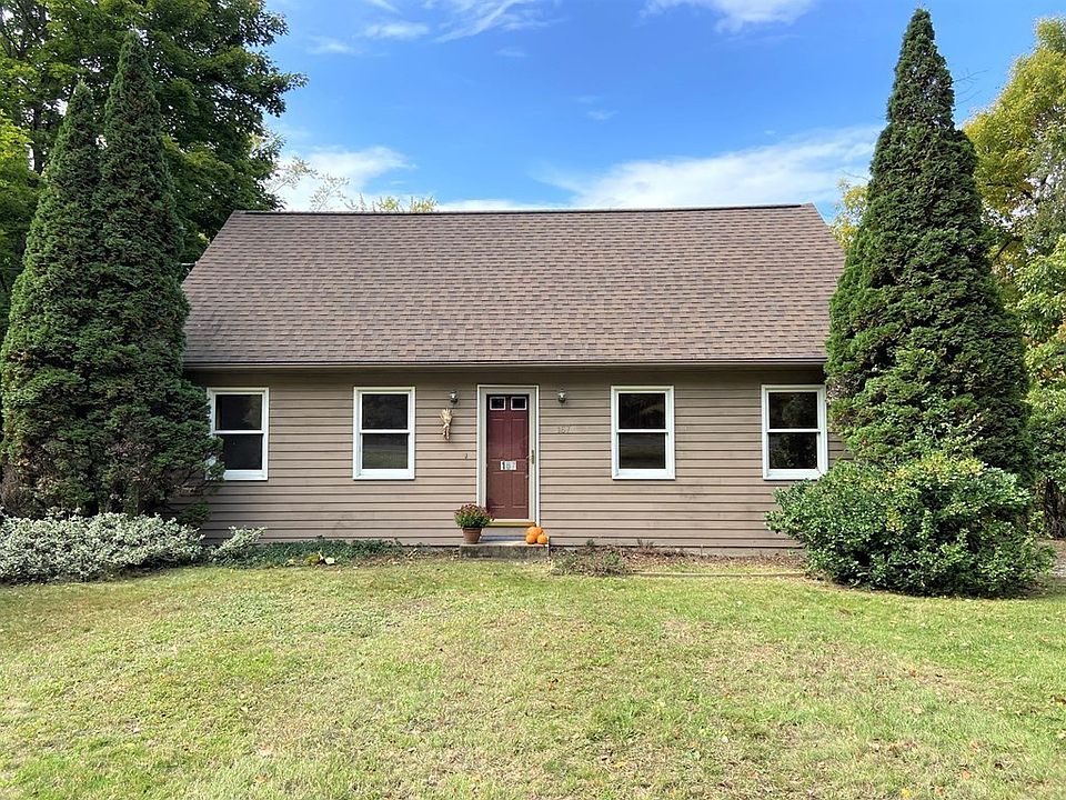 Well built cape style home in Cushman Village area of Amherst. Home offers a flexible floor plan. You could use 1 of the of 4 bedrooms as a dining room. Spacious living room and large, eat -in kitchen. Two upstairs bedrooms are very large and have ample closets. Two full baths, one on each floor, is a plus. Hardwood floors in all but kitchen and baths. Flex room in basement, which is a walk out. Wood siding, newer roof, and a decent yard to enjoy. Easy commute to UMass and to downtown Amherst. Breakfast at the Cushman Cafe is a bonus! Come Preview!