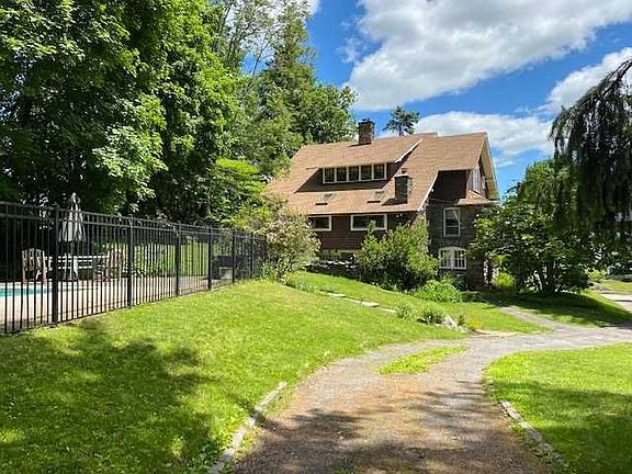 Grand Hudson Valley Arts and Crafts architect designed home , set atop knoll behind stone wall in a peaceful oasis, large front porch overlooks vintage neighborhood. Fine craftsmanship displayed in all the intact details; large,gracious livingrm/stone fireplace, baywindows/window seats, complementary formal diningrm, built in corner cabinets, multiple pocket doors, skylighted kitchen overlooking rear yard and pool. Broad split staircase accesses front and rear of house. two room 1st floor suite/half bath. Accessible to neighborhood shopping, Central to Vassar area, route 9, Riverfront & Walkway, recreation, culture, renovating downtown, minutes to Metro North
