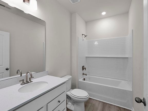 The Julie II is well curated floor plan that invites you to come in from the moment you drive up and see the tasteful brick front and covered entry that says "Welcome Home"! The kitchen includes staggered shaker cabinetry, a beautiful farmhouse sink, electric range, pendant lights, designer granite countertops, stainless steel appliances, upgraded plumbing, and an island. The kitchen opens up to the great room which includes a fireplace, and dining area. The great room is the perfect space for both everyday living entertaining family and friends and has an abundance of natural light. The spacious primary suite includes dual sinks with granite vanity tops, garden tub, shower, enclosed water closest, and a massive closet. Upstairs is the 4th BR that can also be a flex room. Home also includes Craftsman brushed nickel light fixtures, extensive closet space throughout, and an irrigation system. Interested in a GreenSmart home & a natural gas community? Live Green. Live Smart. Gas hook up available in the kitchen, tankless-gas hot water heater, programable thermostat, Energy Star appliances, Low-E glass windows, above industry rated insulation, and a programmable 4-Zone irrigation system are just a few of the standard items that will assist with lowering your monthly utilities while reducing your carbon footprint at the same time Relax and unwind on the covered patio, an ideal place to enjoy the beauty and nature of the spacious backyard. Each lot is unique and provides plenty of green space overlooking wooded views, perfect for entertaining guests and creating memories for many years to come.