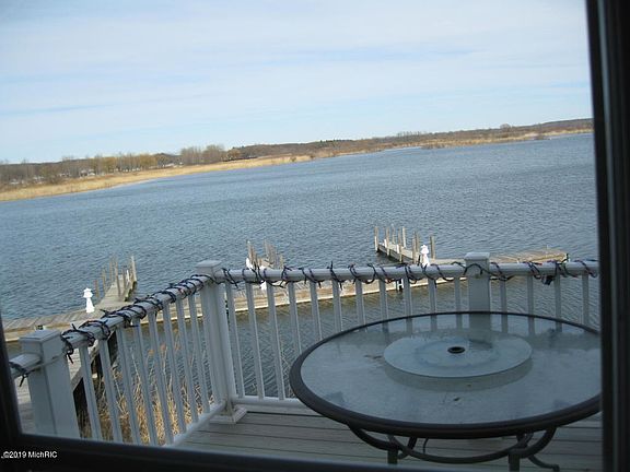 INCREDIBLE SUNRISES and views of Manistee lake out your windows and private patio. Walk out to your boat with your personal 30' boat slip with power and water. Manistee lake offers great views, fishing and access to the Manistee river and Lake Michigan. Incredible opportunity to own an end unit condo. Kitchen and Dining area are finished with Belmando Tile, Stone backsplash with Petoskey stone cabinet pulls. Custom built-In bookshelves surround the fireplace in the living room. This condo is set up for having a lot of company or family to visit. 3 bedrooms and 3 full baths, one on each floor. Main floor has Master bedroom, Full Bath, living room and Deck. Upper level features Master Bedroom, Bedroom, Office area & full bathroom. Walkout level has family room with Patio leading to your dock