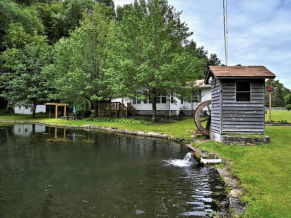 Welcome to this water front home on over 1.5 acres of cultivated goodness including a garden space & grapes ready to tend! Home has 3 bedrooms,2 baths, a 2 car garage.There is also a large storage building.The kitchen and living area are spacious with room to gather. Large back patio & a front porch overlooking the pond. There is even a pond front swing! Creek running through the side of the property keeping the large pond fresh for fish watching or catching. This is a unique & flat property that is centrally located to several area lakes & a short 10 minute drive to Robbinsville , Andrews & the Nantahala Gorge area for white water rafting and fishing. Whole house UV water system in place