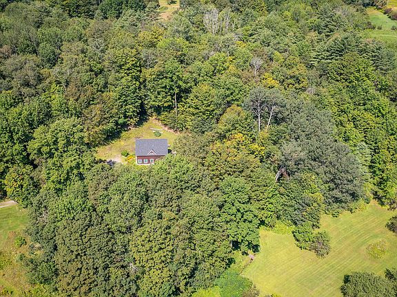 Desirable Pomfret! A well maintained Cape style home, in a private pastoral setting! The thoughtfully designed floor plan creates comfortable living space benefitting from abundant natural light. In every direction the views from the interior present tranquil scenes, of both open land and peaceful woods. On the ground floor a mudroom with adjacent 1/2 bath provides a practical entrance. Off the mudroom is the generously sized kitchen, complete with center island, attractive counter tops and contemporary appliances. Adjacent to the kitchen is the wood floored dining room that then opens to a living room with views of the property. Separated from these main rooms is a study that could well serve as a home office. On the second floor are 3 bedrooms, a full bath. and a laundry. The primary bedroom features a walk in closet. A 2nd large closet is plumbed to become a potential ensuite bath. A full size walk out basement with plenty of room for storage and work shop space completes the home. The 5.24 acres present a nicely diverse landscape. There is level lawn area for a swing set and lawn games. An open field below the home is ideal for viewing birds and wildlife. A cascading stream crosses through the property presenting the omnipresent and soothing sound of rushing water. Wooded land completes the acreage. Pomfret is well known as a nearby rural neighbor to Woodstock. All Woodstock Village amenities of shopping, dining and cultural events are just a short drive! An opportunity!!