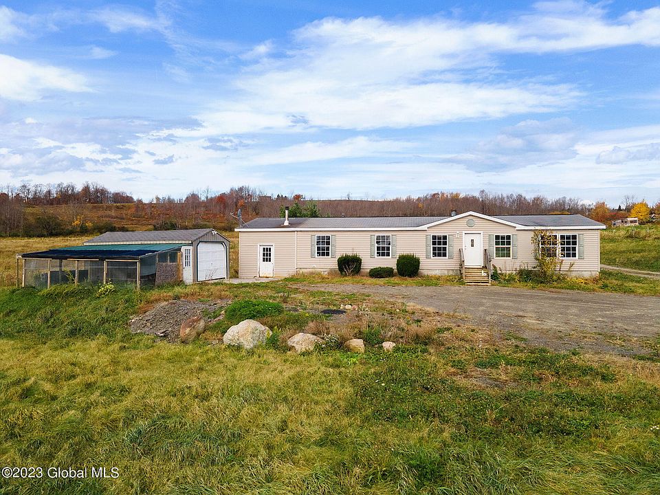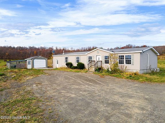 Spacious 2005 Doublewide on 25.51 acres. Home features 3 bedrooms, 2 full baths, open concept kitchen & living room with wood fireplace. Large garage, great for a home workshop. Bathroom started in garage. Dirt road leading to backside of property with a shale pit. Great views. Within 5 mins to Decatur State Forest. Don't miss out on this great property!