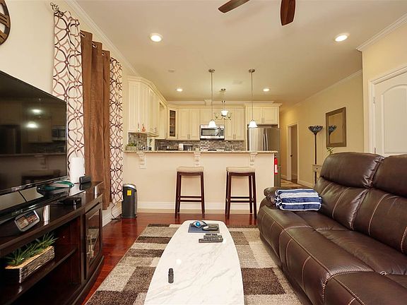 This home is in immaculate condition and you must see it to believe it!!!! Built in 2018 with a large 3 bedrooms, 2 1/2 baths and an oversized two car garage plus a driveway that fits one more car. It is nestled in a quiet neighborhood just blocks away from the 440 shopping area and a few minutes walk to bus stops going to journal square, path train station or Manhattan Also close to hudson-bergen light rail station which will also take you to the path trains to Manhattan. This unit consists of beautiful authentic Brazilian cherry hardwood floors, ceramic kitchens and baths. Come home and relax off the master bedroom balcony facing south as the sun comes down. This property has three more years of tax abatement with a very low HOA monthly fee.
