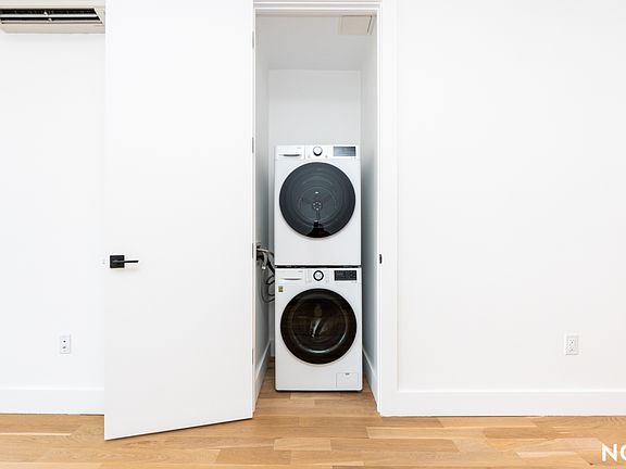Welcome to a fantastic apartment at 161 Meserole, a bright and welcoming residential building. This unit boasts a spacious balcony, in-unit washer and dryer, central AC, and hardwood floors. The modern kitchen includes a dishwasher for added convenience. Residents also have access to premium amenities such as a lounge, laundry room, gym, and beautifully landscaped outdoor spaces, including a shared rooftop with stunning, unobstructed views of the Manhattan skyline.