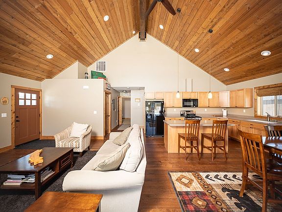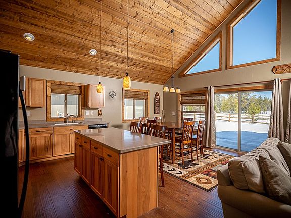 New listing! Great cabin in Donnelly built in 2015 with a comfortable design, detached 2 car garage, electric forced air heat pump w/ A/C, propane HW heater, vaulted tongue and groove pine ceiling, open great room with hardwood floors and pellet stove, and views to Jughandle Mountain. Located in a nice neighborhood with nearby access to the Boulder Creek Boat Launch and Day Use Area of Lake Cascade State Park. Home is 1200 sq ft on the main level, with a main level master bedroom and bath, a second bedroom and full bath, laundry and great room. A 360 sq ft third bedroom is accessed by pull down stairs in the hallway for a total of 1560 sq ft. With nice light, a great location, fully fenced, and ready to move in condition, this is a great vacation or full time cabin home in Donnelly.