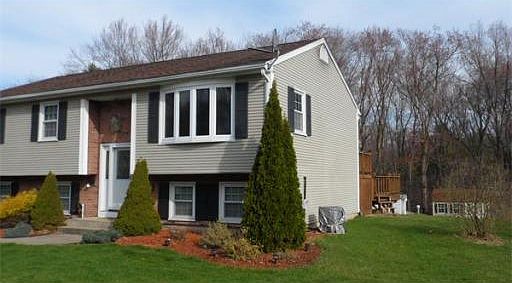 Delight in this Brick and vinyl raised ranch located on a cul de sac with lovely private back yard. Upper level features living room w/hardwood floors, bow window and cathedral ceiling open to kitchen area with vinyl flooring, stainless steel appliances and sliding doors to double level deck surrounding above ground pool. Three good size bedrooms also with hardwood flooring. Full bath on upper level with ceramic tile flooring. Lower level has two finished rooms office and den areas with wall to wall carpet. Half bath with vinyl flooring and laundry. One car under garage. Located near the end of a cul de sac street. Private back yard backs up to woods.
