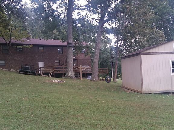 Specs: 3300 Sq feet brick split-level home; 4 bdrm (1 is master); 3 FULL baths-all tiled; hardwood floors upstairs, NEW laminate flooring AND carpet in basement; 2 bdrms have NEW carpet also; Woodburning stove; formal living room, a separate den/office, plus a family room (2nd den) in basement; 1 car attached garage; detached shed; huge double-decker deck out back with beautiful view; lot approx 1 acre and backs up to woods; front porch/balcony on upper level; Roof and hot water heater approx 5 yrs old; all bathrooms have had new vanities/toilets put in; Pella double pane windows throughout; HVAC seasonal maintenance and new part put in a month ago; 3 utility closets, and functioning attic for storage.