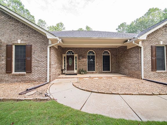 Location! Location! Location! and GREAT condition. Welcome to your five bedroom three bath home on 2.28 acres on a private cul-de-sac lot in Harris County. Entry foyer with woof flooring welcomes you into a great size family room with electric logs in fireplace, built in cabinets and shelving, double trey ceiling and recessed lighting. Separate dining room with wood flooring. Kitchen has amazing kitchen and counter space on granite countertops. Breakfast bar and breakfast area, undercabinet lighting, new stainless appliances, ceramic tile floors and pantry. Owner's suite with trey ceiling, double vanity, vanity area, whirlpool separate tub and shower. Great closets in all bedrooms. Fresh paint throughout most of home. Teen or mother in law suite that has a den, workout room, or an office area with a walk in closet. Front rocking chair porch. Back covered patio/porch area. Framed outbuilding, storage area with attic floored. Back covered area for mower. Home is handicap accessible.