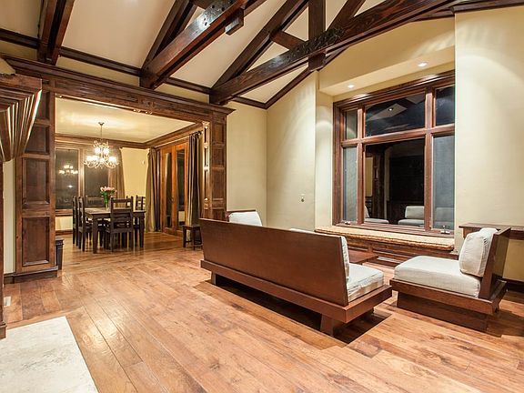 Elegant, Secluded, Bright, Custom quality home situated on an oversized view lot. Multi-level floor plan with private master suite on 3rd floor; with (3) walk-in closets! Large kitchen with all stainless KitchenAid appliances. Exceptional views from dining and living rooms. Breakfast area opens to an oversized secluded patio; surrounded by large pines. Library/family room right off the kitchen. Rich wood flooring, travertine, tumble marble and custom cabinetry throughout. Very large maids quarters with living area, kitchenette, bedroom, full bath; and private access. Current sleeping accommodations for as many as 16!!! Just minutes from town, this luxury home will prove perfect for large family & friends, partnership or even corporate ownership; as this is the retreat you've been looking for!