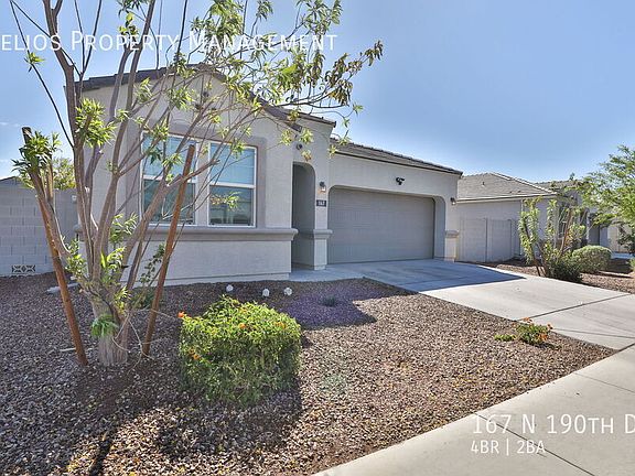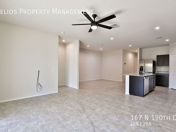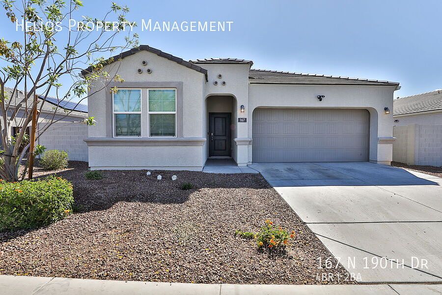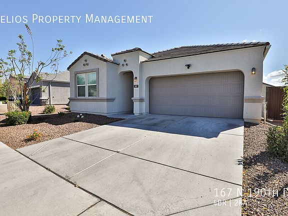 This beautiful 4-bedroom, 2-bathroom home was built in 2021 and offers modern construction with updated features throughout. It includes spacious bedrooms, two full bathrooms with stylish finishes, and a bright, open living area that's perfect for relaxing or entertaining. The open-concept kitchen features modern appliances, plenty of counter space, and a pantry for extra storage. Central air conditioning and heating provide year-round comfort, and the attached 2-car garage offers secure parking and additional storage space. Don't miss out on this modern Buckeye home. $2,095.00 per month rent, $2,095.00 Refundable Security Deposit, $200 Admin Fee, $55 Application Fee. $25 monthly Energy and Preventative Maintenance Program fee which includes installation of new AC filters every 60-days. $300 non-refundable pet fee and $50 monthly pet rent per approved pet. Facts and figures are provided to the best of Helios Property Management's ability but are not guaranteed to be accurate. A renter's insurance policy with $100,000 liability is required to rent. You are encouraged to verify any fact or figure materially relevant to you and your decision to rent this home. Equal housing opportunity.