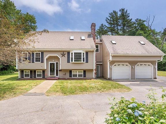 This Contemporary Cape offers three to four bedrooms, 3 full bathrooms, A two car attached garage and 2200 square feet of living space nestled on a private 1.1 acre lot. The main level features a very spacious kitchen with stainless steel appliances, granite countertops, an open dining area with sliders leading to a two tiered deck. A large living room with soaring ceiling, fireplace with wood stove insert and bow windows is off of the kitchen. There's also an additional room that could be a fourth bedroom or dining room and a full bath and laundry room. The second level consists of a private 25 foot Master bedroom suite with vaulted ceiling, sliding glass doors leading to a private balcony, skylights, a walk in closet and full bath. Two additional bedrooms and a third full bath complete the upstairs. 3 Zones of heat, a newly installed septic systen (2015) and two sheds for additional storage. Be first to visit the open house on a Sunday June 28th from 11:40 to 1:00.