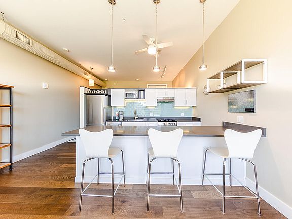 Enjoy the very best Portland's East End/India Street neighborhood has to offer from this sophisticated and modern lofted one-bedroom condo. You will be in the heart of it all in this elegantly designed unit, steps away from some of the best restaurants and shops Old Port has to offer. This beautifully maintained building boasts one of the only ''living'' rooftop terraces in Portland, where you can appreciate sweeping views of the city and Casco Bay. The minimalist open space unit has soaring ceilings, a spacious bathroom, ample storage, gas range, efficient AC/heat, and in-unit washer and dryer. Secured, covered and heated one stall parking space, a storage unit, modern gym, lounge, and guest room round out the of offerings. Monthly condo fee includes cable/internet.