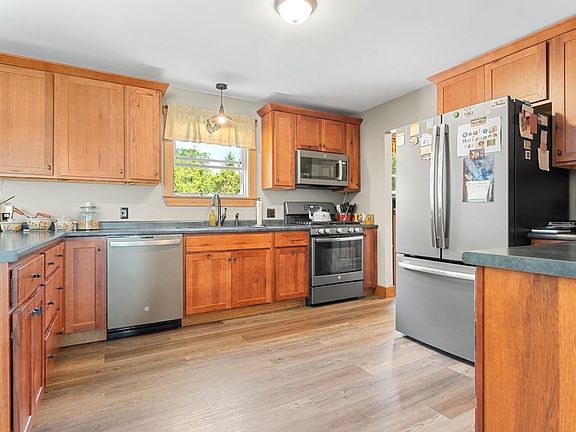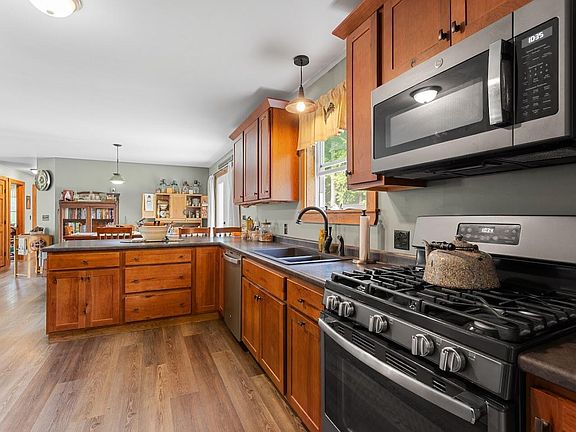 ROME Beautiful Custom Ranch home in country location, open concept kitchen, dining and living room, 3 good sized bedrooms, 2 bath home. primary bedroom with bath & small room for office or nursey, radiant heat in the house and garage 30x36, mudroom, storage over the garage. Located on dead end road surrounded by 450 acres of conservation land plus 200 feet of privacy fence. PLUS 24x28 gravel pad with driveway for second garage. Close to all recreational activities fishing, boating and snowmobiling!