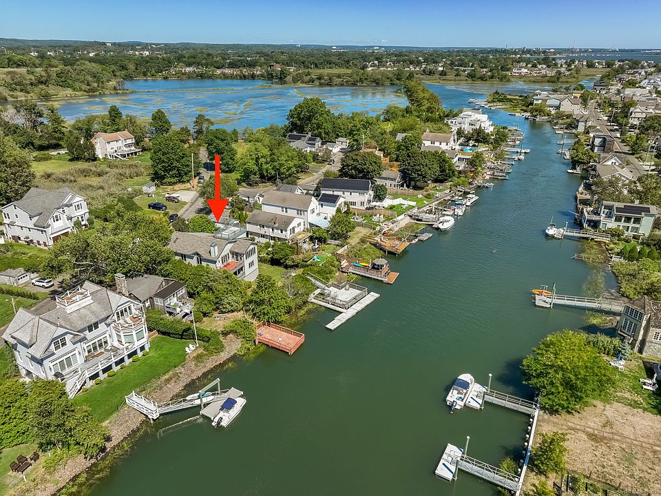 An exceptional waterfront opportunity in Fairfield, 167 Old Dam Road combines rare coastal access with sweeping water views. Positioned along Pine Creek, the property features a large private dock ideal for boating, paddleboarding, kayaking, or simply enjoying the serene setting, with direct access leading to Long Island Sound. Designed to maximize both space and scenery, the top floor features vaulted ceilings in the open living and dining area with expansive windows and direct access to the water-facing balcony. The kitchen, sun-filled office, and versatile bonus room round out this level, while a striking spiral staircase leads to a rooftop terrace offering unobstructed panoramas of Long Island Sound, an extraordinary backdrop for entertaining or a quiet retreat. The second floor is anchored by a retreat-style primary suite with dual walk-in closets, a well-appointed bath with walk-in shower and whirlpool tub, a sitting area, and private balcony overlooking the water. Two additional bedrooms share a full bath, offering comfort and flexibility for family or guests. The entry level provides a large garage with tandem space for up to four vehicles, and an elevator services all three levels for ease and convenience. With its prime waterfront location, expansive layout, and endless potential, this home presents an unparalleled canvas for personalization and a rare opportunity to create a custom coastal retreat in one of Fairfield's most desirable enclaves.