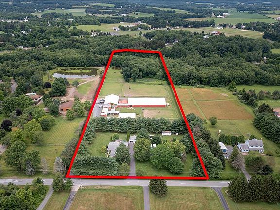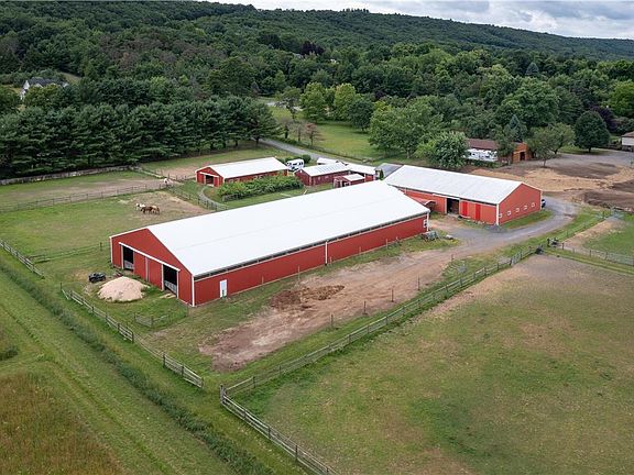 Established facility for the serious equestrian. Saltbox style home w/ 4 bedrooms & 3 bathrooms. Wood floors on 1st & 2nd floors. Master bedrm/sitting area combo on 2nd floor. Loft area can be used as an office or exercise room. Kitchen was updated 7 yrs ago & has granite counter tops, SS appliances & tile flooring. Bathrooms w/ new tile & granite sinks. Basement has separate living quarters: kitchen, living room, bedrm & ¾ bathrm. 2 car detached garage. APARTMENT COMPLEX (separate septic system): well-maintained 2 two bedrm units & 1 one bedrm unit + shared laundry facility. Excellent rental history w/ a group of good tenants. STABLE COMPLEX: Handsomely appointed box stalls. Beautiful & spacious indoor riding arena w/ heated lounge. Grooming/tack area, restroom, hot walker, 6 paddocks. Footing in indoor ring belongs to previous tenant - will replace w/ basic footing or sell footing to new owner. Separate 9 stall barn + shed row w/ stalls. Separate outbuildings for sawdust & equipment.