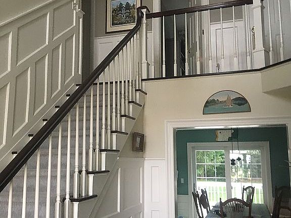 A newly remodeled kitchen offers hardwood floors, high-end stainless steel appliances, custom cabinets and marble and soapstone counters. A center island and kitchen dining areas offer multiple eat-in options whereas a separate formal dining room with hardwood floors provides a view of Lake Champlain. There is a living room with built-in book shelves and cabinets that also offers views of the Lake. A carpeted large family room with a stone fireplace and shiplap wainscot provides for family gatherings around television. An expansive deck and grass yard separate the house from the forest. A storage shed offers space for lawn equipment and garden tools. A tile floor mudroom with adjacent half bath separates a two car oversized garage from a hardwood floor entry way. Two bedrooms and a remodeled full bath are located on the second floor. A large second floor master bedroom overlooks Lake Champlain. The newly renovated master bath offer granite countertops, double sinks, built-in cabinets and a huge walk-in shower with Kohler multi-function features and connects to a walk-in closet with built-in shelving. There is another gathering spot with built-in shelves, a full bath, storage room and office in the fully carpeted basement. A shop and separate mechanical room complete the downstairs space.