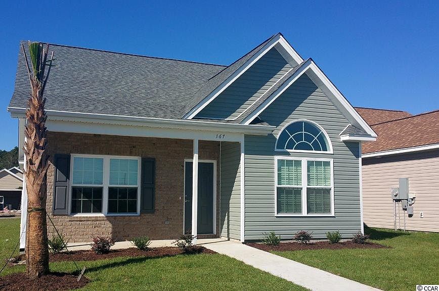 This is the Magnolia plan. Palm Cove is an exciting new home community on Palmetto Point Boulevard, just across Hwy 17 Bypass from the Withers Preserve and Market Common area. This great location gives you quick access to the beach; Market Common; Crabtree gym and recreation areas, walking areas, and ball fields; Coastal Grand Mall, and just about any location on the beach, since you have stoplight access to Hwy 17 Bypass. Unbelievable low prices for such a great location, and take a look at all of these STANDARD features included in the price: 9-foot ceilings, brick accents plus low-maintenance vinyl siding, tile flooring in kitchen and baths, granite kitchen counter tops, upgraded cabinets with slam-proof and self-close feature, garage door openers, ceiling fans with light package in all bedrooms and living room, custom trim package including full wood trim (instead of just a sheetrock return) on all windows, sprinkler system included with fully landscaped yard. WOW!! Good-looking and functional, and lots of extras for no extra charge! On-site model open daily. Or call us or ask your agent to call for a complete sales brochure on the exciting PALM COVE Community!