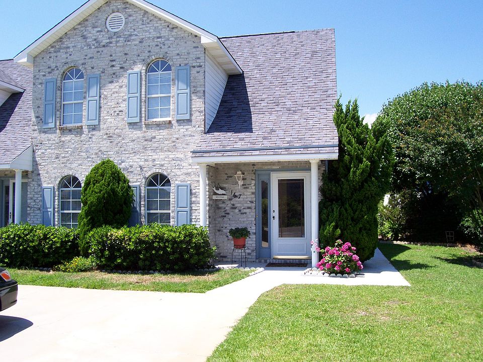 GREAT VALUE, GREAT COMMUNITY, GREAT LOCATION! HOA dues only $740/year. Loads of Extras on this property. All brick with maintenance free siding. End unit with large front and back yard. Private driveway for parking 4 vehicles. Approximately 1650 square feet. Two large master bedrooms, two full baths. 10x17 Family Room w/high ceiling (RARE IN THIS DEVELOPMENT). Hardwood floors in living room, dining room, and family room. Tile in entry foyer and kitchen. Carpet in bedrooms with walk in closets. Custom 2-inch window blinds throughout. New shingles (roof) and new skylights. Extra kitchen cabinets and counter space (largest in the development). Second floor master bedroom has on-suite master bath, sitting area in foyer, laundry room with full size washer and dryer, large walk in attic with work bench and storage. Two miles from Cherry Grove Beach.
