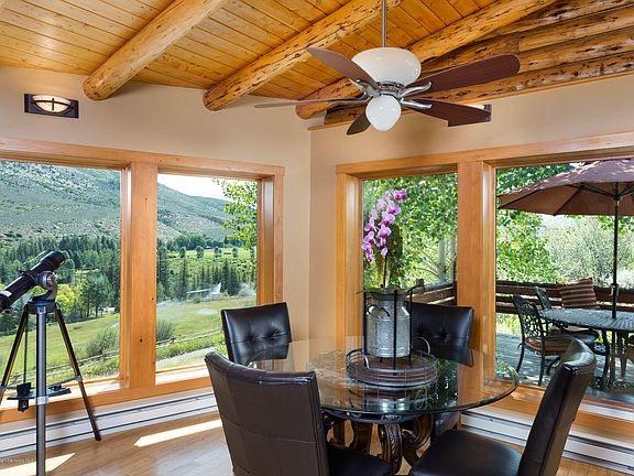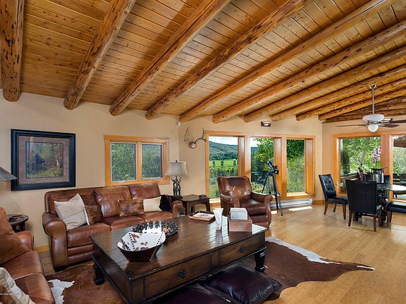 It feels like a home inspired by a John Denver song, but this beautifully remodeled true Rocky Mountain home was actually once owned by another well-known celebrity (totally remodeled in 2005). Perched on a hillside, views from the lovely deck & from inside the home overlook the verdant Snowmass Creek Valley and capture the Continental Divide. The professionally designed decor complements log and Colorado stone accents to create a warm and wonderful mountain ambiance. The main living area and the spacious, sumptuous master suite occupy the same level. Guests have their own quarters downstairs. There are three fireplaces to warm by and everyone will be lulled to sleep by the soothing sounds of Snowmass Creek. Private setting in idyllic Snowmass Creek Valley. 1.5 miles from Highway 82.