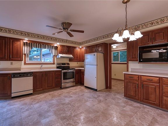 This is a one-owner, three-bedroom brick ranch on 1.12 acres in a beautiful country setting, complete with a picnic pavilion. The primary bedroom has an en suite half-bath with sink and toilet and a walk-in closet. Most of the windows were installed in 2016 and the roof was new in 2012. A breezeway connects the house to the extended two-car detached garage which has overhead storage. In the mudroom, which is accessible through the breezeway door, there is a half-bath. The basement features two large finished rooms with many storage closets and another half-bath with walk-in shower and sink (plumbed for a toilet).