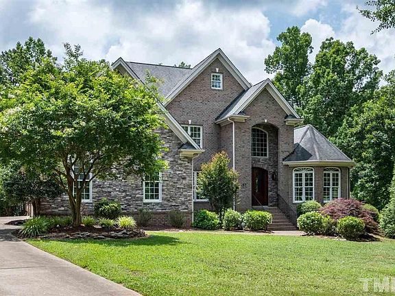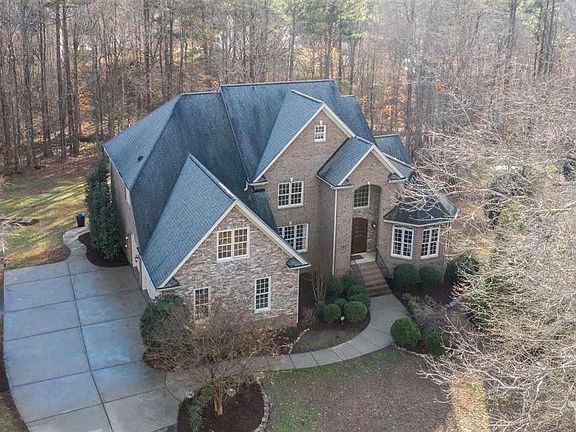 Lovely brick and stone estate home situated on a 1.5 acre cul-de-sac lot in The Falls at Norwood, an exclusive executive community! Chef's kitchen with granite counters, tile back splash, and Bosch appliances. Expansive deck, accessible from the sunny breakfast room and master bedroom, overlooks your private, wooded back yard! Stunning, custom mill work throughout, site-finished hardwoods on main, whole-house audio + 3-car garage! Easy access to major highways and RDU-just 20 minutes to North Hills!