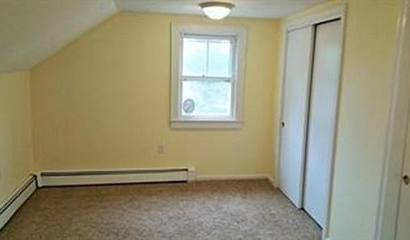 3 bedroom, 1 bath, 1 car garage. This unit is located on the 2nd floor of a two family house. Eat-in Kitchen, living room, large master bedroom with 13x10 walk-in closet. Property is located on a flat acre near the center of town. Hot water baseboard GAS heat.