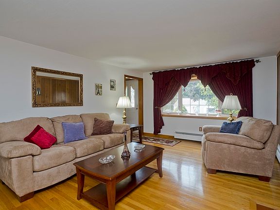 The great curb appeal of this home gives just a hint of how well-maintained the inside is! The living room easily accomodates large furniture, and the bay window allows the sunlight to illuminate the beautiful hardwood floors. The eat-in kitchen has updated appliances and an 8 foot sliding door out to a deck that steps down to a covered patio and a great back yard. The main bedroom has hardwood floors and ample closet space. Two other bedrooms have carpet over hardwood floors. Bathroom nicely updated. Partially finished basement family room and workshop walks out to the garage. Super convenient location close to schools and shopping, and easy access to major highways.