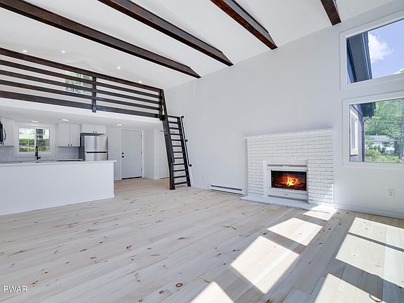 Do Not Wait! This is Your Chance to Own This Completely Remodeled Light and Bright Lakefront Home on Wonderful Flat Property in Sought-After Dingmans Ferry Location! Oriented to the southeast to capture the morning sun over the water, this modern one-level home w loft is the perfect weekend escape or full-time retreat. This idyllic setting is just moments from the Dingmans Ferry Bridge into NJ, hiking and stunning waterfall adventures at the Delaware Water Gap National Recreation Area and a convenient drive to downtown Milford for shopping and a bite to eat. Enter semi-circle driveway and step into open-concept main space. Beautiful pine flooring and white walls provide an immediate sense of calm and windowed front wall offers the perfect vista.Wood burning fireplace to keep cozy all winter and NEW deck is accessed via dual sliders to outside. Exposed beams and fully remodeled kitchens and baths. Upstairs, find the perfect extra den, sleeping space or kids' hangout via ladder-stairs. Three bedrooms - including two with water views. Stone path to lake. Docks allowed. Public Water & Sewer! New roof too. Simple, sweet - an ideal retreat. Don't Wait - Very Rare to Find Waterfront Homes at This Price in This Condition - Call Now to Schedule Your Private Tour Today!