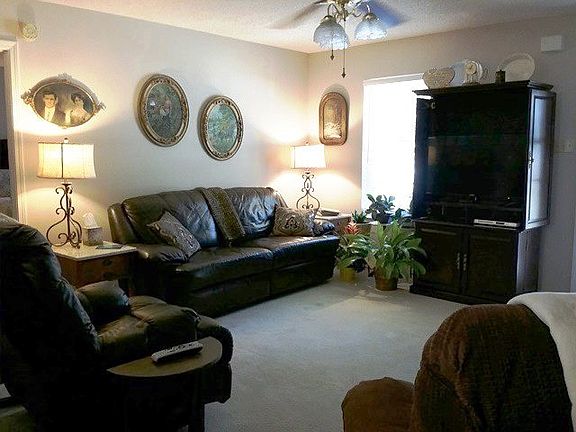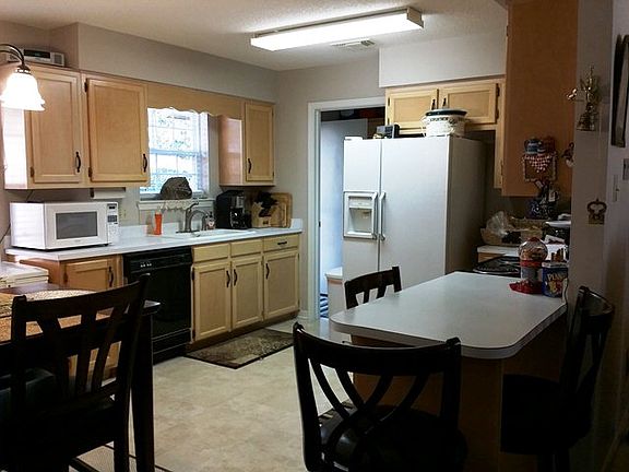 House has 4 bedrooms, 2 masters or one could be a in law suite. Split bedroom plan. House is move in ready condition. Open floor plan, large 14x18 deck off thekitchen over looks a wooded lot which over looks the woods. Very private. Single carport and a shed. New roof.