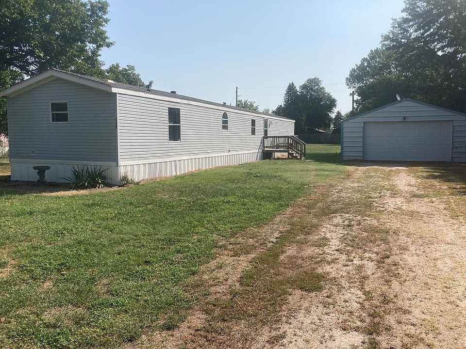 Updated 3 bedroom 2 bath mobile home on large lot includes large 2 car detached garage.