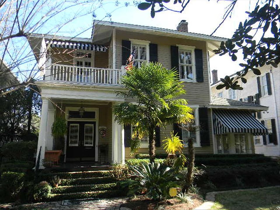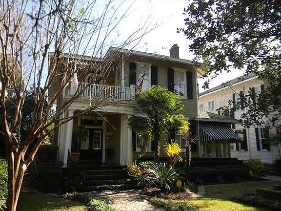 A large oak tree, flowing fountain, awnings, and a front porch with double front doors welcome you to this marvelous historic home in the Oakleigh Garden District. Walking in the front door, a gorgeous foyer with fireplace and soaring staircase greet you. Then you take in the spacious formal living and dining rooms, both with working fireplaces! The totally remodeled kitchen has a huge island, butler's pantry, and opens to a comfortable den. The large master bedroom is upstairs, and has a sitting area, fireplace, window seat, and French doors that lead to a balcony. Perfect to enjoy that morning cup of coffee and newspaper. The other two bedrooms are a nice size also! Hardwood and ceramic tile flooring. Decorative molding, plantation shutters, and ceiling fans added throughout the home. Both the kitchen and den have a wall of windows to look out onto the back yard, which is to die for! Large custom built patio has columns, beaded ceiling and ceiling fan. Just off the patio is a wood burning fireplace that is adorned with stone and Old Mobile brick. All of this outdoor living area compliments the sparkling gunite pool with large brick edged concrete deck area. The custom iron gate has brick columns with gas lights. Separate storage building with electricity and freezer. Lots of outdoor lighting as well as two grilling areas. The back yard is privacy fenced. And the sellers will leave the new whole house generator!