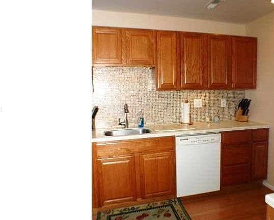 End Unit Town home with recently updated kitchen to include oak cabinets, corian counter tops, tile back splash, under cabinet lighting, recessed lighting and all newer appliances. Both baths have been updated with newer sinks and ceramic tile floors. Main level with new wood look laminate flooring throughout, den/office area, combo living room and dining room with sliders to patio. Master bedroom with 2 large floor to ceiling closets, 2 other beds with ample closet space. All beds with ceiling fans and newer neutral carpeting. Laundry conveniently located between the bedrooms! Best of all newer 30 year roof on the home; the same roof extends on the attached homes for a clean even look. Newer heat/air/hot water heater and cellular shades, windows with a lifetime transferable warranty on the glass! Back yard is fully fenced and offers privacy in the rear and to the end unit side; patio and shed complete the yard. Attached one car garage with inside to the interior. Across the street is the tot lot and ball field that the residents say love the peaceful view!