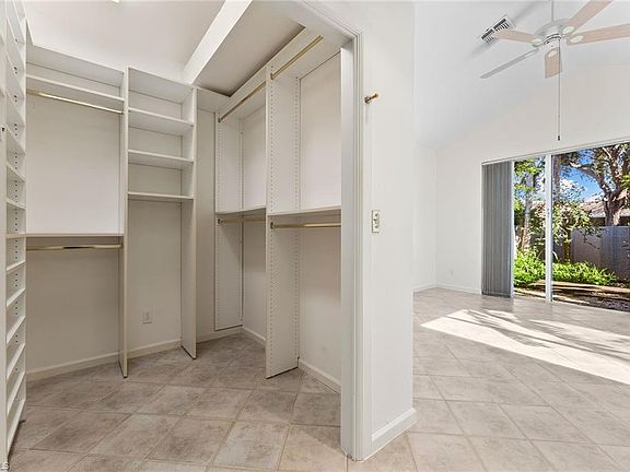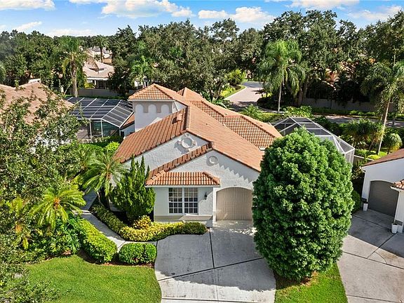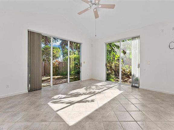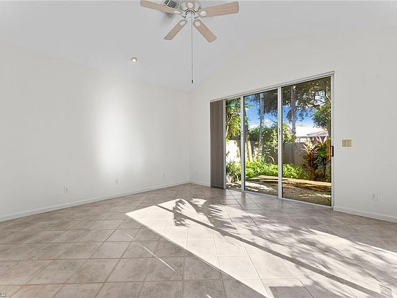 Fantastic opportunity in the enclave of San Rafael in The Vineyards. This single-family pool home has a beautiful floor plan and architectural design with vaulted ceilings in the main living area through the kitchen. The home overlooks a gorgeous landscaped yard with several private outdoor spaces, in addition to the screened lanai and pool. Freshly painted with tile throughout, this three-bedroom, three-full-bath home has 2,236 square feet of living space. Multiple architectural windows in the living room add light and charm upon entering. Two of the three bedrooms have large walk-in custom closets, and the garage is air conditioned and tiled. Stroll through the lush, tropical neighborhood. Enjoy the convenience of a central location in Naples, close to Interstate 75 with easy access to downtown Naples or midtown Mercato. The Vineyards has a beautiful clubhouse with tennis, pickleball and golf available with membership.