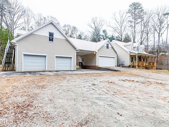 Cape cod on a private acre lot just minutes from downtown Toccoa. Home offers 2 separate, oversized, 2 car garages, both with additional storage space, a large driveway, and a carport. TONS of room to grow with partially finished apartments above both garages, as well as a partially finished basement and finished bonus room. Enjoy evenings on the large deck overlooking the private wooded lot, while listening to the babbling stream in the backyard.