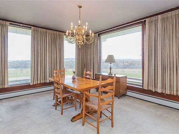 Very motivated seller looking for offer. Unique Spacious home on 10 acres with Stunning Views! Home has Mid Century modern/Frank Lloyd Wright Industrial Vibe with exposed Wood & Steel Beam, exposed brick, several gorgeous stained windows. Large Windows everywhere with Views that go on & on. Open concept great room w Vaulted ceilings & dramatic staircase. Unique Doors including a pocket door into family room. Acreage to be subdivided. Other features: Master/In-law Apartment, 2 indoor Grills, Bar, 17" ext brick walls, 2 septic (grey & black), 2 Boilers (1 newer). Massive Garage. Come see this Unique home and make it yours! This is an estate sale. Sold "AS IS", inspections for informational purposes only.