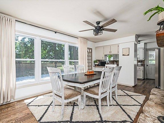 This beautiful residence, crafted from stone and cedar, is located in a long-standing community on a spacious full-acre lot. Inside, the nearly 3000 square feet of space includes 4 bedrooms, 3 bathrooms, a generous recreation room, a double-sided fireplace connecting the living and dining rooms, an updated kitchen, new light fixtures, and flooring. The fully finished basement adds to the interior appeal. Outside, you'll find a substantial stone-covered patio, surrounded by numerous mature trees, with extensive front and back yards enhancing the property's charm.