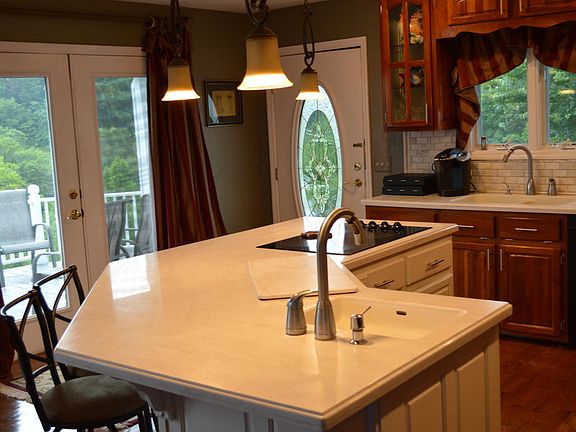 REDUCED BY 20K! Motivated seller so bring offers. Beautiful lake front home with exceptional mountain and lake views in the gated community of The Point at Shanghai. All of this home is on one level with the exception of an office(or bedroom) upstairs. Impressive open floor plan with large gourmet kitchen that includes solid surface counter tops and a tiled backsplash. The kitchen also features a large island with cooktop. The home features hardwood floors starting in the kitchen and working out to the main living area which features a fireplace with views out over the lake and mountains. The master suite has a walk-in shower, whirlpool tub and double vanity sinks with walk-in closet. Three other bedrooms for guests and a full bathroom complete this house.