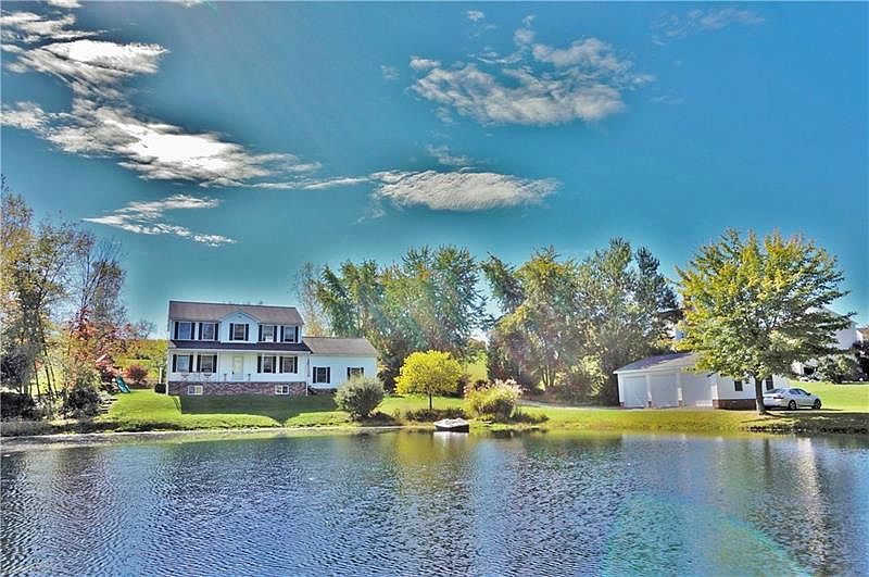 Your serene country paradise awaits! This amazing property offered by the original owners has so many features & is positioned in a convenient location (minutes from cranberry) with a country atmosphere & aquatic surrounding. From the moment you step onto the front porch you will be captivated by the tranquil setting overlooking the beautiful pond. The master suite features cathedral ceilings, full bath, huge walk-in closet & bonus area (office or nursery are some possibilities). The finished lower level is complimented with a stone fireplace, bar, game room, bedroom & spacious laundry. A 2 stall attached garage (with attic storage) & 3 stall insulated detached garage (w/heated radiant floor system) offers many possibilities for those extra vehicles or toys! The fully stocked pond includes bass, perch, & white armor (wait until you see the size of these fish)! The beautiful setting coupled with the care, quality & location of this home makes this one of a kind property a great choice!