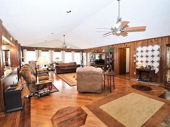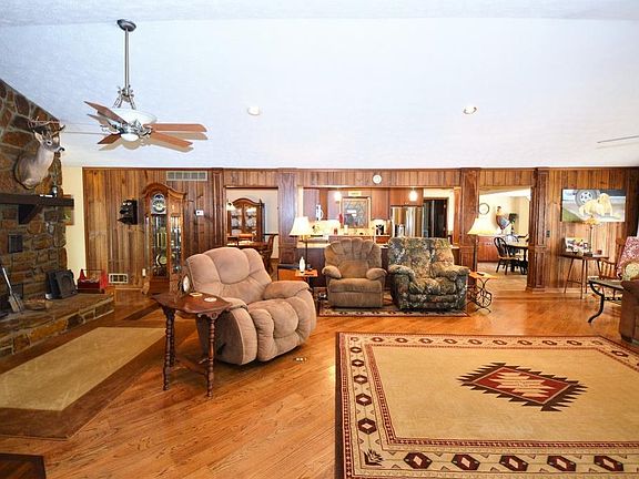 15 Breathtaking acres, mostly fenced with a gated entrance and the PERFECT property for horses! Lovely sprawling brick, ranch home has been remodeled with new kitchen, bathrooms, and extensive hardwood floors. The kitchen has granite, SS appliances, and new cabinets. Walk out of the french doors off the master bedroom to the saltwater pool, fire pit and covered pool gazebo. This home also boasts an enormous screened porch, sunroom, covered RV parking pad, barn and workshop, plus an additional out building with electricity! Full finished basement with separate entrance.