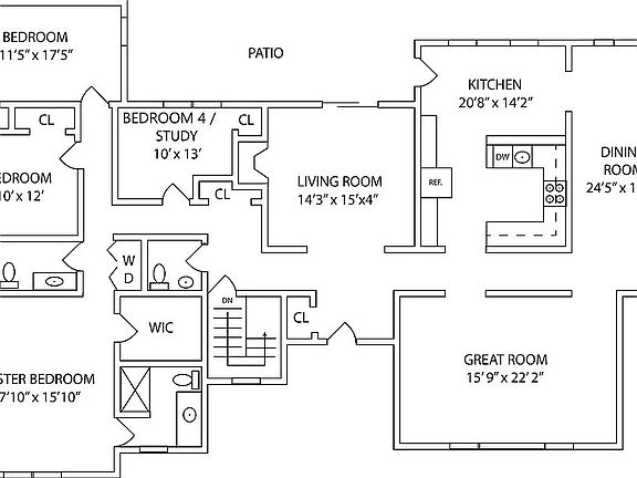 This custom ranch sits majestically on a beautifully landscaped private 2-acre lot close to the town center. A CLASSIC Wonderful Entertaining home has a circular floor plan that is fantastic for entertaining. The formal dining room is spacious and perfect for large gatherings. Enjoy the formal living room where you can unwind in front of the gas fireplace or gather in the family room with vaulted ceilings. The main living areas boast radiant heat for efficient winter heating, thermal windows throughout and wood flooring. The eat-in kitchen is equipped with an Induction Stove, Bosch dishwasher and Samsung French Door refrigerator. Gather around the bar or take a seat at the table where you can take in the outdoor view. After dinner, you can lounge outside on the paver patio in your private backyard where you can watch gorgeous sunsets, gardens and mature trees providing privacy. The well thought out floor plan has every necessity for today's modern family; a separate bedroom wing with four bedrooms and two full baths. The Laundry is conveniently located outside the master bedroom. The lower level has a recreation room that is perfect for a pool table, a separate exercise room or play space for the kids. There is even a 5th bedroom roughed out with a Full Bath - perfect for Au-pair or In-law suite. The oversized attached garage offers space for your toys and has a built-in workbench. All this conveniently located to both the High School and Elementary School, downtown shopping and restaurants. Neighborhood meets convenience in this MUST SEE home!