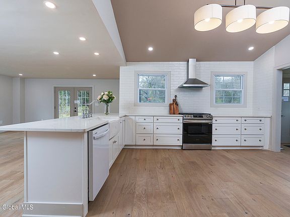 This quintessential Modern Farmhouse situated on a 5.9 Acre Sub-Dividable lot, has been completely remodeled & redesigned to the studs, from top to bottom! While maintaining its true character on the exterior, its interior features luxurious amenities starting with the gorgeous quartz kitchen, large living rm w/electric FP & 1st Fl study/sunroom w/glass french doors. Its spacious Primary Suite offers a stunning full bath with a soaking tub & ceramic tiled shower. Plus, for convenience there is a 1st Fl laundry room! Other features include brand new furnace, central air, roof, windows & more. Showcasing its ideal open floor plan w/stunning elements such as the newest light fixtures, wide plank hardwood floors & vaulted ceiling, this home is truly one of a kind!