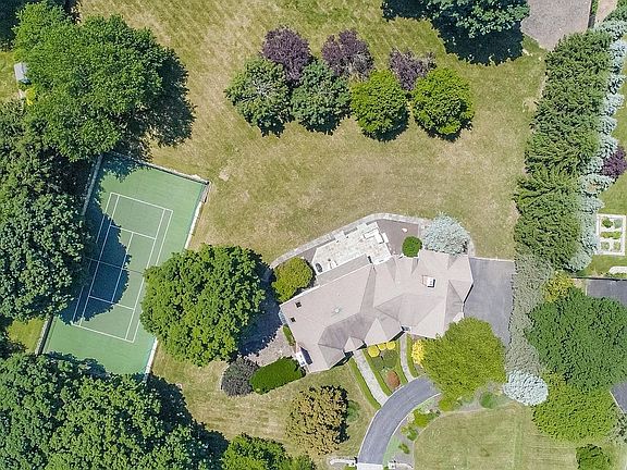 Nothing else like this: unparalleled sunny property and the kitchen of your dreams! This home has been almost completely remodeled in the last five years, with meticulously designed details for pure transitional luxury in a generously sized space. Step into the classic black-and-white marble, two-story foyer, flanked by a large modern dining room and library/office with floor-to-ceiling solid wood paneling, built-in bookshelves and fireplace. Continue through into a breathtaking chef’s kitchen, completely rebuilt and expanded in Nov 2016 with oversized windows for a stunning view of the expansive 2-acre property and tennis court. This gourmet kitchen features top of the line appliances, honed marble countertops, a walk-in pantry with wood shelving, and dozens of premium, custom-designed features. The kitchen even has a dry bar entertainment center with a 146-bottle Sub-Zero wine cooler and unique glassware display. The open layout to the living room (with handmade cabinetry and a marble-encased fireplace) is perfect for parties – or open the regal French doors onto your wide stone patio. The first floor also has two half bathrooms. Upstairs, the stately master bedroom features a fireplace and airy master bath with high ceilings, skylight, and a walk-in closet. 4 additional bedrooms are each bright and well-sized with ample storage, boasting 3 full bathrooms. The second floor also has a huge bonus room ready for a variety of uses. Downstairs, the lower level has 600 square feet of finished space with a bedroom and full bathroom perfect for guests, an au pair, in laws, a gym, a playroom, or office space. The lower level walks out to a second large stone patio, supplying brilliant natural light, and there is a fourth fireplace in the finished lower living room. Additional unfinished space has full-height ceilings and is well-situated should you wish to continue expanding! In addition to the kitchen renovation, the house was repainted at the end of 2016. It also has solid wood floors throughout, a four-car garage, and has been hardwired in every living or sleeping room for high-speed internet. This house is a must see!
