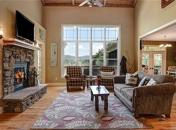 If you have dreamed of owning a home in Western North Carolina, this is it! Imagine, waking up and walking from your bedroom to the screen porch with a fabulous year-round long-range view of the mountains and stream! The owners added a large screen porch with a stone fireplace with a cedar ceiling. The main living area also has a large stone fireplace with a cedar ceiling. The private master bedroom has a large master bath and walk-in closet. There are two more bedrooms on the main level. There is also a bonus room above the garage. The lower level has a bedroom and a full bath with plenty of entertainment spaces. The fire pit is near the stream and there is plenty of space for lawn games. The lawn has beautiful rock formations and flowers for year-round enjoyment. This home is on a cul-de-sac, and the subdivision is conveniently located to grocery stores, shopping, Hendersonville, Asheville and the Asheville airport. This home is move-in ready!