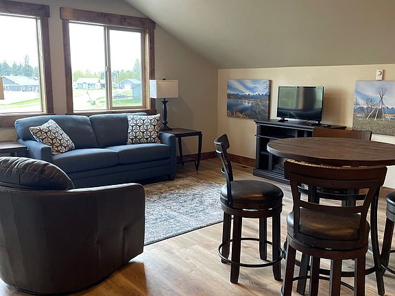 All utilities included in rent- $1,450.00/M. Furnished apartment available September 8, 2025 thru May 25, 2026. 8 month tenant lease required. Air conditioned, upgraded finishes. Included utilities: gas, electric, internet, garbage, grounds maintenance, and smart TV for streaming. 1 car garage. Driveway plowed by owner, tenant must shovel sidewalk. Steps/stairway access to apartment above garage. Very quiet and beautifully landscaped yard. Covered gazebo to enjoy the mountain views. Located just minutes from Glacier International Airport. Lots of hiking close: 35 minutes to Glacier National Park. Centrally located to Kalispell, Whitefish, Bigfork, and Columbia Falls. All utilities included in rent on this furnished apartment available from September 28, 2025 thru May 25, 2026. Looking for 8 months rental tenant. $1450.00 per month, $1450.00 Security Deposit. Included utilities: gas, electric, internet, garbage, grounds maintenance, and smart TV for streaming. Furnished apartment with upgraded finishes. Coffee maker, microwave, utensils, pots & pans. 1 car garage, adtl. parking in driveway. Driveway plowed by owner, tenant must shovel sidewalk. Steps/stairway access to apartment above garage. No smoking.