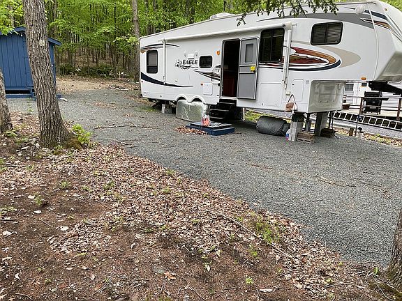 Own this LAKEVIEW opportunity in Amenity-Filled Lake Adventure! Enjoy Fishing, Paddle Boarding, Canoeing, Boating, Mini-Golf, Big Pool, Basketball, and more...Includes all-year-round ELECTRIC, WATER, AND SEWER. This 1 bedroom 2012 Eagle Superlite Rv has everything you need for your getaway. it is in almost brand new condition. Lot is leveled and comes with the shack as well.