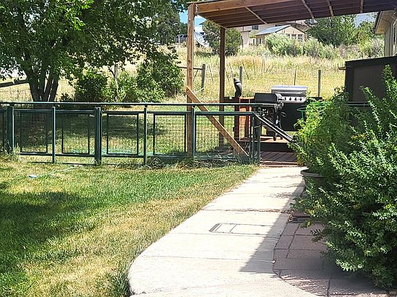 This property has it all: 4 bedroom, 2 bath with a bonus room, an 826 sq.ft. garage/shop wired 220, 2 sheds, gorgeous mature landscaping with cement walkways all around the home and a back deck for relaxing or entertaining. This home optimizes outside living.Landscaping includes lawn, willow tree, lilac bushes and cherry tree and the HOA provides irrigation water. It is a beautiful outside space.Inside has an open floor plan with a large eat in kitchen and bar for seating. New stainless appliances. A sunroom addition has gorgeous views of the mountains. This is at the end of a private road and across from open space affording lots of privacy. This is really all you need...and at an affordable price.