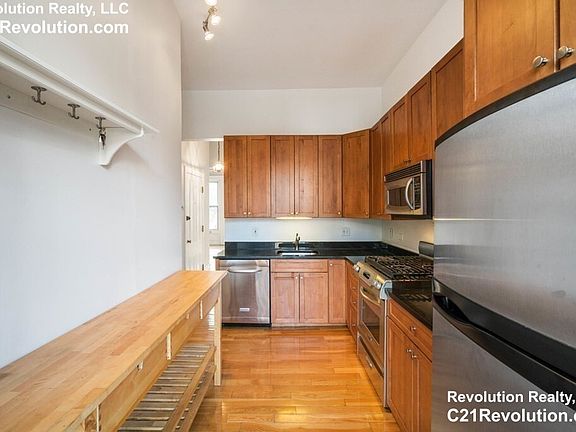 Pet-friendly, with restrictions. Wonderfully renovated one bedroom with parking, private deck and central air. Sunny floor-through has hardwood floors, very large living room/dining room, high ceilings with original detail and ornamental marble fireplace. Kitchen features granite countertops, stainless appliances, new electric range with convection oven and lots of cabinet storage. Bedroom has closet with organizers for extra storage. Tile bath with granite vanity and window. Laundry is located in building (no charge). Close to several bus lines, Orange line subway, Boston Medical Center, Northeastern University, and all of the South End shops and restaurants.