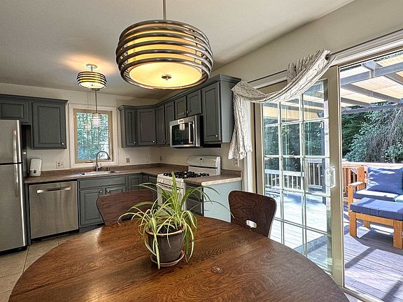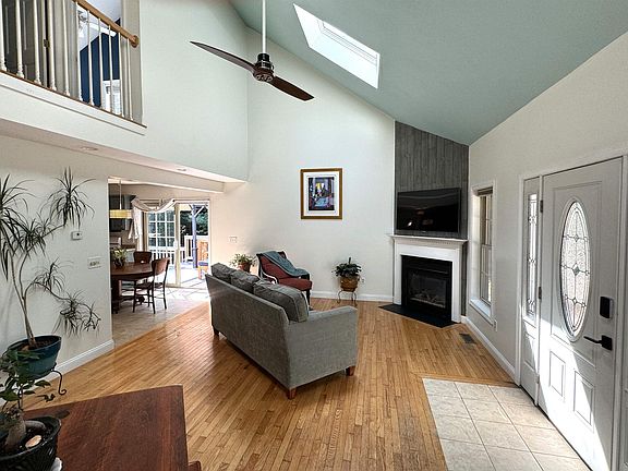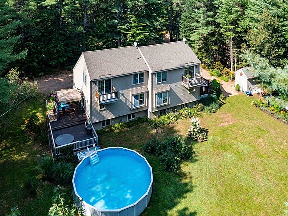 WONDERFUL & AFFORDABLE! Beautiful contemporary cape with 3 levels of living and plenty of outdoor space to enjoy. Stunning living/dining has hardwood floors & a propane fireplace, skylights and cathedral ceilings. One of the 3 bedrooms is on the main level, offering flexibility for guests while a balcony off the primary bedroom is a perfect space for winding down. Centric to the house is a well-equipped eat-in kitchen with modern lighting and a large slider to a double-sized deck. With a shade pergola and plenty of room for a hot tub, grill, table & couches. Large finished lower level with family room is equipped with full wall screen for projector style viewing and a small kitchenette. Additional rooms for hobbies & workshop. Beautiful gardens lead into the yard with plenty of room to relax or play, the deck is also a perfect pool entry. Being half of a duplex allows for the affordability factor to make this your next (or first) home. Green Hill Estates does not allow rentals and there is an obvious pride of ownership in the neighborhood. The location is only 1.5 miles from Sherman’s Farmstand (and ice cream) in Conway and in another ½ mile you’ll be at Weston's Farmstand or the beach on the Saco River. All of which is just outside of the village of Fryeburg Maine where the food and fun begins and Conway and North Conway villages in the heart of the beautiful Mt Washington Valley to entertain all of the year-round amenities the area has to offer.