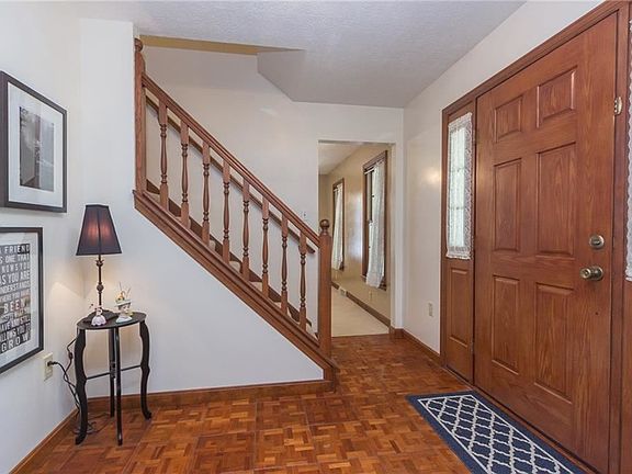 Located in the Desirable Wellington Estate Development Within the South Side Area School District. This 2-sty, 4 Bedroom, 2-Car Att., Cordes Built Home is Located on a 1.43 Acre Lot. A Wrap-Around Porch Graces the Front Area of the Home. Property Includes a Beautifully Landscaped Large, Level and Private Backyard Abutting the Woods. The Home Includes a Large Oak Eat-In Kitchen w/Ceramic Tile Flooring. Convenient Floor Plan Includes 1stFlr PowderRm and Laundry/Mud Room Off Kitchen as Well as 2-Car Attached Garage. Slider Off Kitchen's Dining Area Leads to Private Backyard (24x18) Deck. Also a Formal Dining Room off Kitchen. Large LivingRm w/Cozy Brick Log Fireplace off Kitchen. 2ndFlr Master BedRm Includes Full Master Bath and Walk-in Closet. 4th Bed Room May be used as Nursery, Office, or Craft Area. Lower 23x17 Area Used as Game Room and is Plumbed for Future Bath Room if Desired. Property Includes a 12x10 Garden Shed. Home Warranty Included.